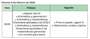 El próximo viernes 6 de febrero tendrán lugar los exámenes de las siguientes acciones educativas: