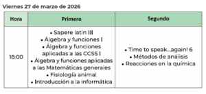 El próximo viernes 27 de marzo tendrán lugar los exámenes de las siguientes acciones educativas: