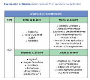 ¡¡MUY IMPORTANTE!! A estos exámenes solo se puede presentar el alumnado matriculado en 2º de Bachillerato que esté en condiciones de titular (matriculado de todas las materias, de 1º y/o de 2º, que le faltan para obtener el título de Bachillerato).